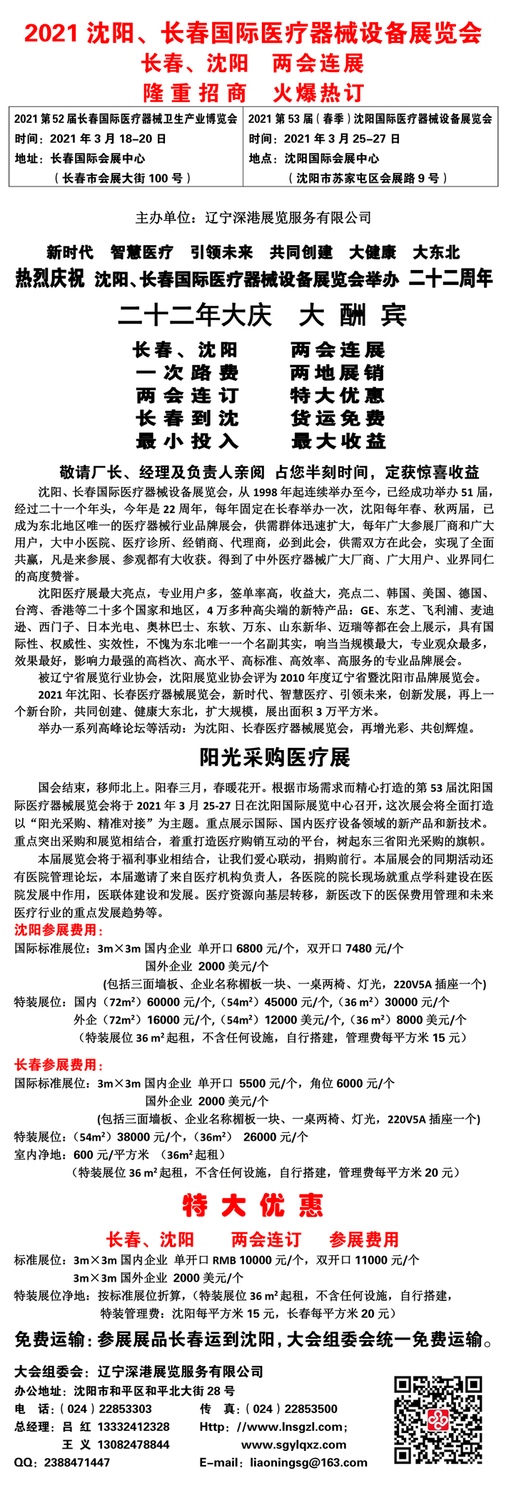 | 【兩會連展】2021沈陽、長春醫(yī)療器械展兩會連展隆重招商火爆熱訂 | |