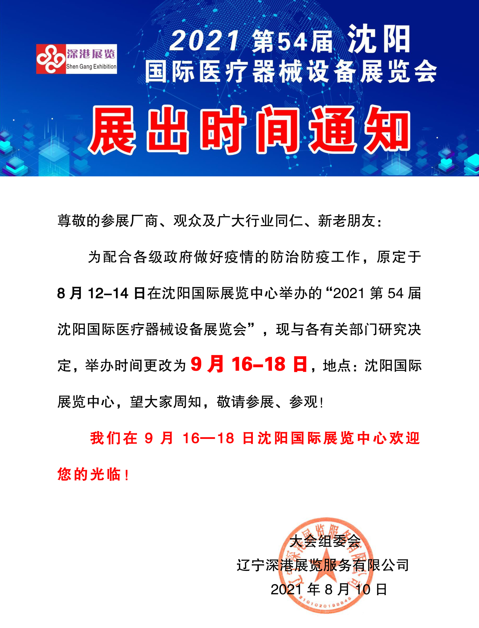 | 2021沈陽(yáng)醫(yī)療器械展更改為9月16-18日在沈陽(yáng)國(guó)際展覽中心舉辦!?。?/strong> | |
