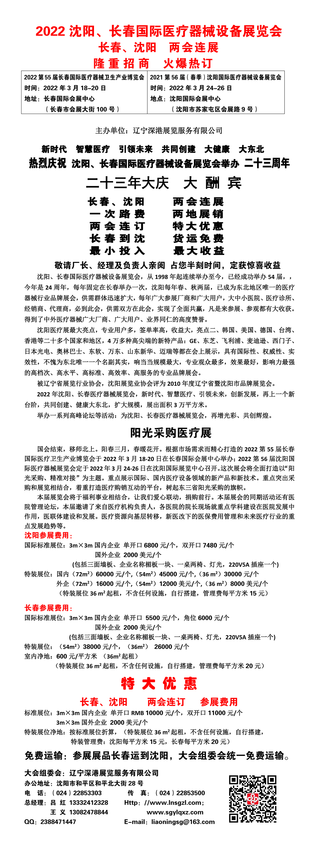 | 兩會(huì)連展|2022長(zhǎng)春、沈醫(yī)療器械展~特大優(yōu)惠 | |