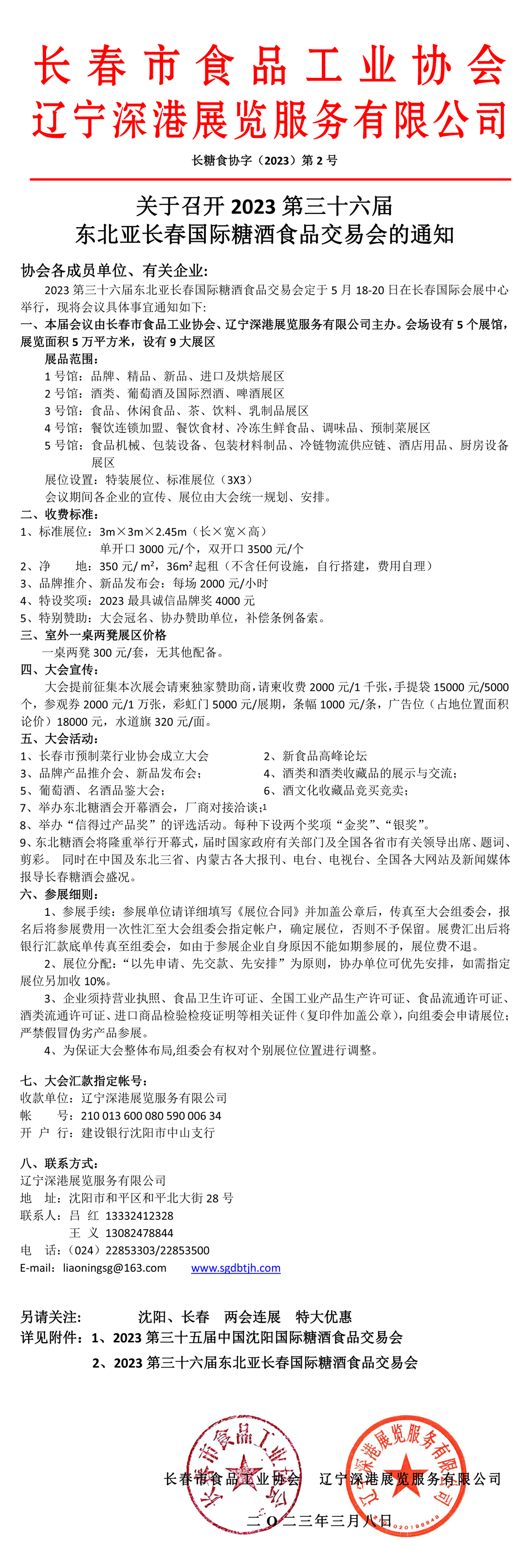 關(guān)于召開2023第三十六屆東北亞長春國際糖酒食品交易會的通知